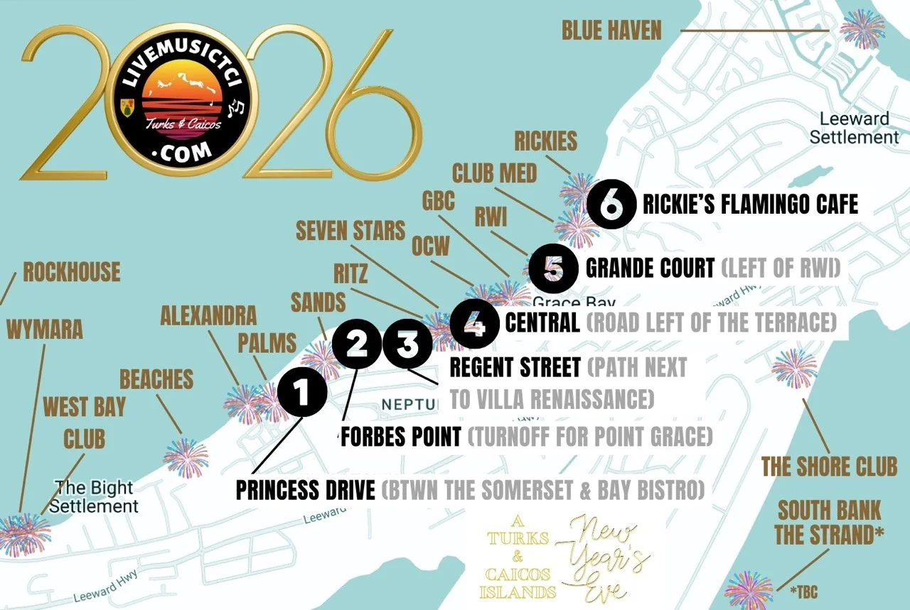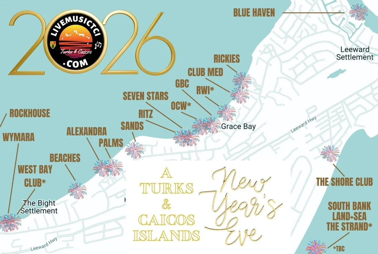 Not spending NYE on Provo? Here's what we know so far for Grand Turk, North Caicos, and Middle Caicos. Grand Turks is hosting a kids Junkanoo parade at 8pm + fireworks on the beach! Know of something we're missing? Email us at livemusictci@gmail.com.