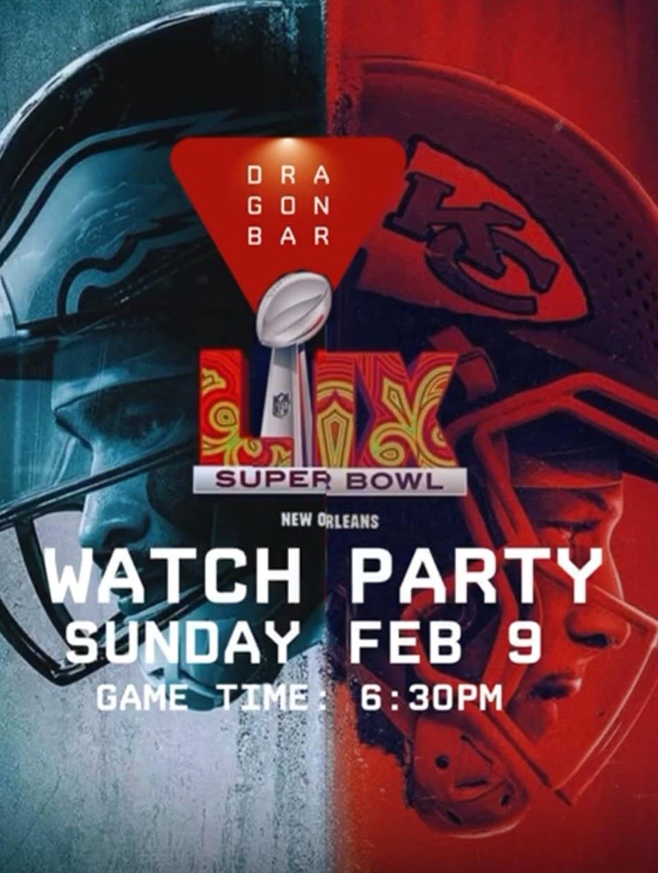 Doors open at 5:30pm for the Super Bowl Party at the Dragon Bar on Leeward Highway. With food provided by Buns Burger Bar and game day specials on drinks plus beer buckets for $25, this local hot spot known for great DJs + pool + casino games is also a great casual bar to watch sports all year round!